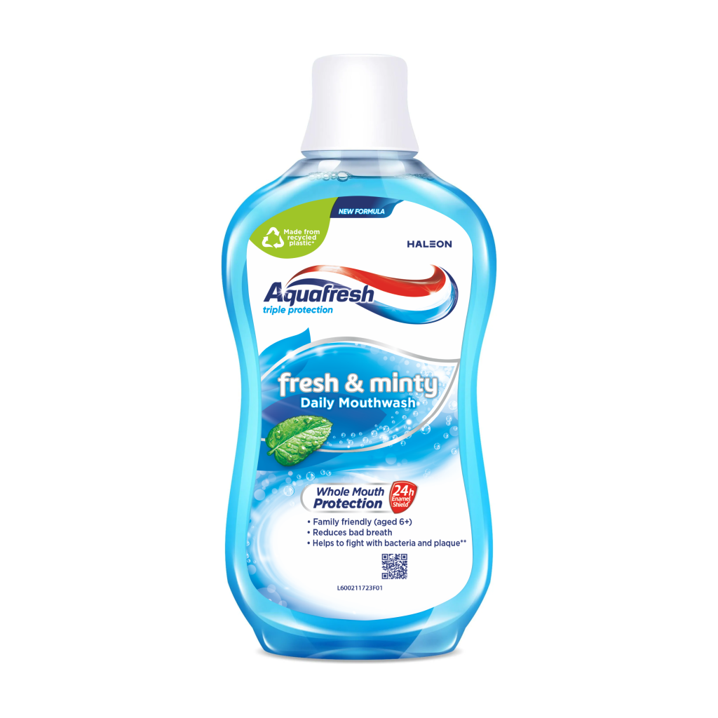 Бесспиртовой ополаскиватель для полости рта Aquafresh Fresh & Minty подходит для использования всеми членами семьи от 6 лет. Обогащенный фтором, этот ополаскиватель с приятным вкусом защищает поверхность зубов от воздействия сахарной кислоты на протяжении всего дня**. Специальные ингредиенты помогают устранить неприятный запах изо рта и бактерии, вызывающие кариес*, способствуя сохранению здоровья десен.