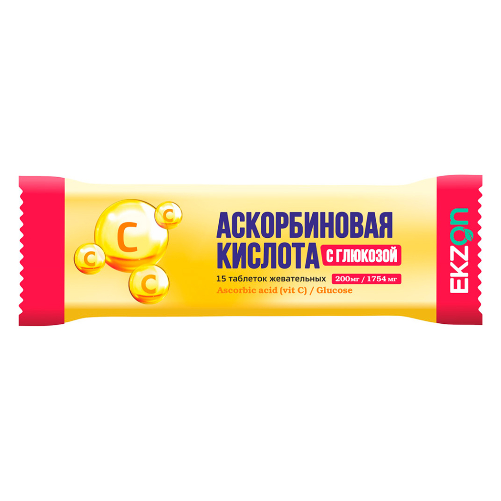 Аскорбиновая кислота с глюкозой таблетки жевательные 200мг/1754мг №15