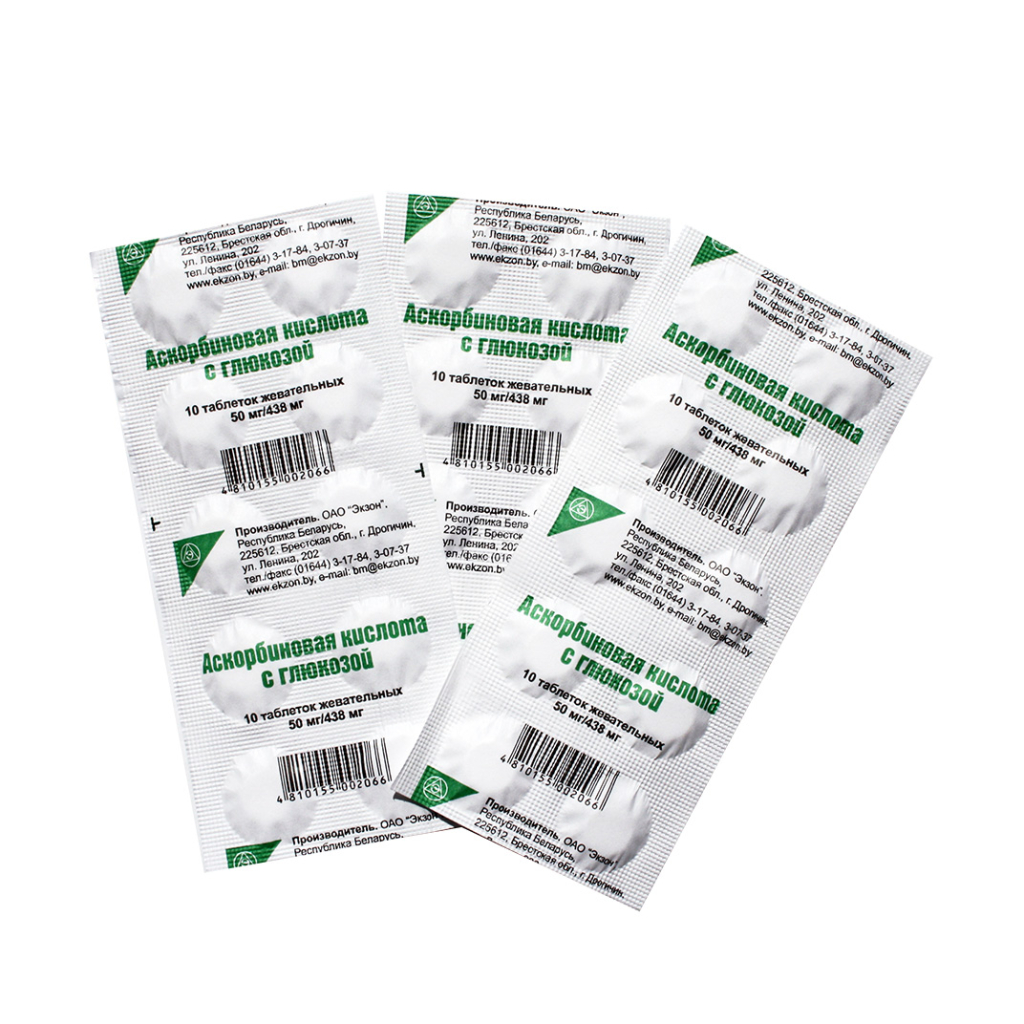 Аскорбиновая кислота с глюкозой таблетки жевательные 50мг/438мг №10