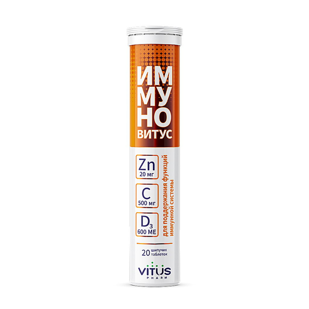 Купить Витус «ИммуноВитус с витаминами С, D3 и цинком» с ароматом малины, БАД шипучие таблетки №20