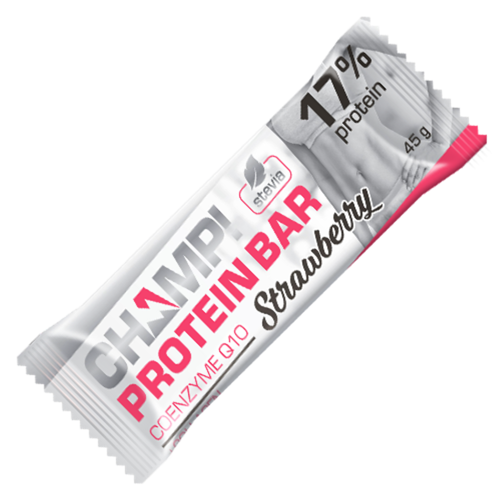 Белки молока (молоко сухое, концентрат сывороточного белка), соевый белок, кокосовая стружка, экструдированный рис, ягоды и фрукты (клубника, яблоки), коллаген гидролизованный, овсяное пищевое волокно, коэнзим Q10, подсластитель – стевиозид (экстракт листьев стевии).