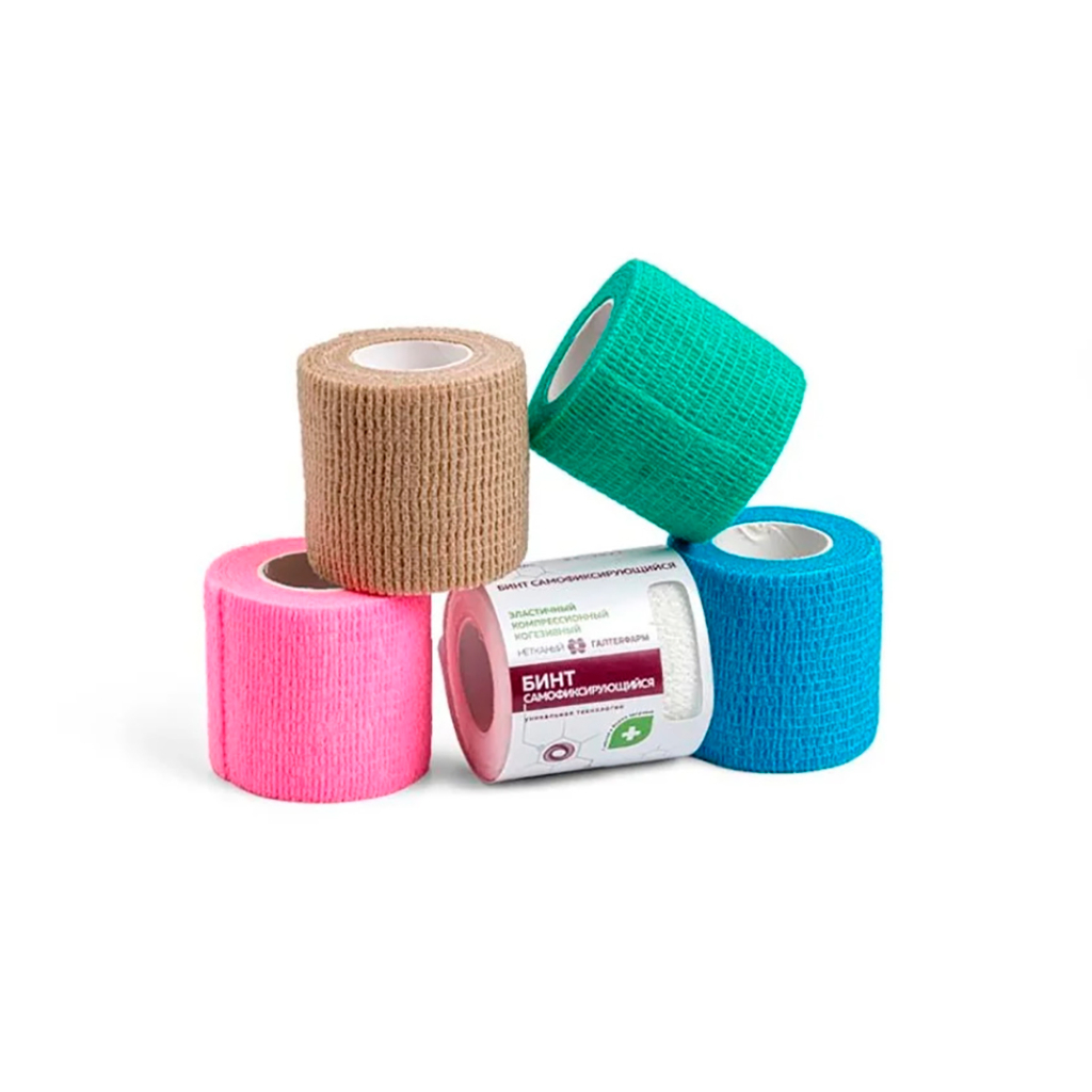 Бинт обладает когезивными свойствами, что позволяет ему надежно сцепляться сам с собой, не прилипая к коже или волосам. Это обеспечивает простоту в использовании и минимизирует дискомфорт при ношении. Эластичная структура бинта равномерно распределяет давление на травмированную область, способствуя улучшению кровообращения, уменьшению отека и поддержке мышц и суставов во время реабилитации.
