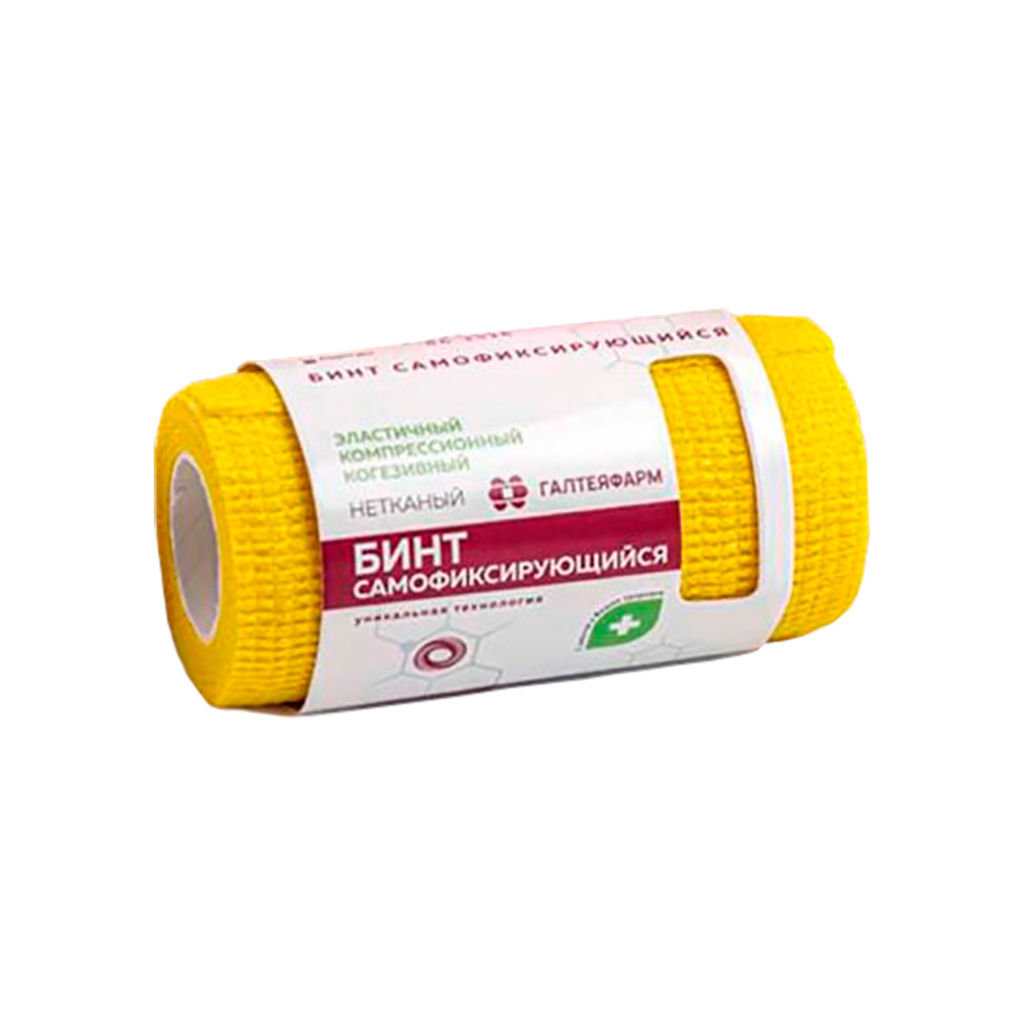 Бинт эластичный компрессионный когезивный нетканый 10смх4,5м (желтый)