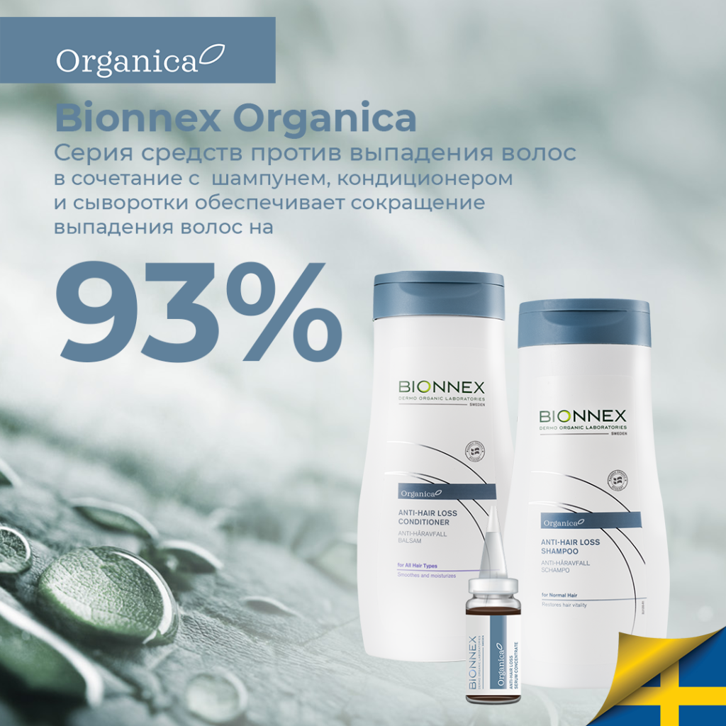 Серия Organica специально разработана для волос склонных к выпадению. Помогает предотвратить выпадение волос благодаря 100% органической формуле Vitis Complex CX25. Согласно исследованиям, проведенным в швейцарских лабораториях Farcoderm, было доказано, что Organica помогает предотвратить выпадение волос на 90% при регулярном использовании в течение 6 месяцев. Не содержит парабенов, SLES, SLS.