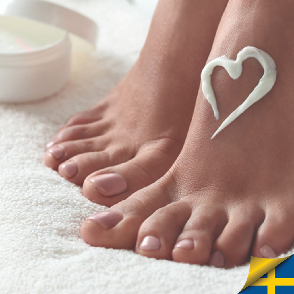 "Массажными движениями нанесите достаточное количество крема на кожу ног и пяток. Используйте ежедневно 2 раза в день."