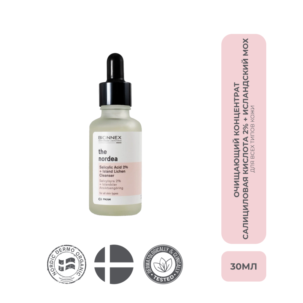 Купить Bionnex THE NORDEA Очищающий концентрат Cалициловая кислота 2% + Исландский мох для всех типов кожи 30 мл