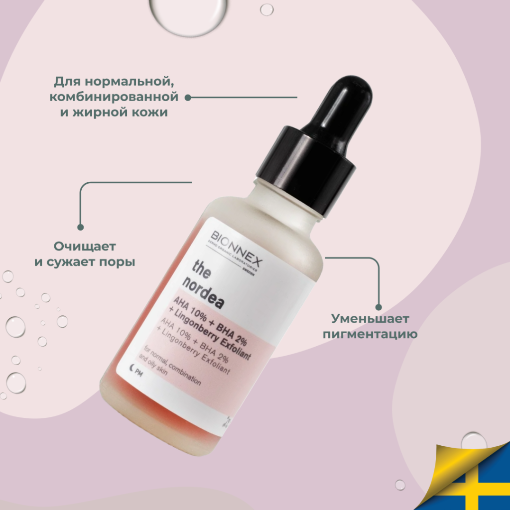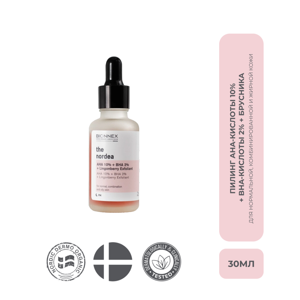 Цена на Bionnex THE NORDEA Пилинг AHA-кислоты 10% + BHA-кислоты 2% + Брусника для нормальной, комбинированной и жирной кожи 30 мл