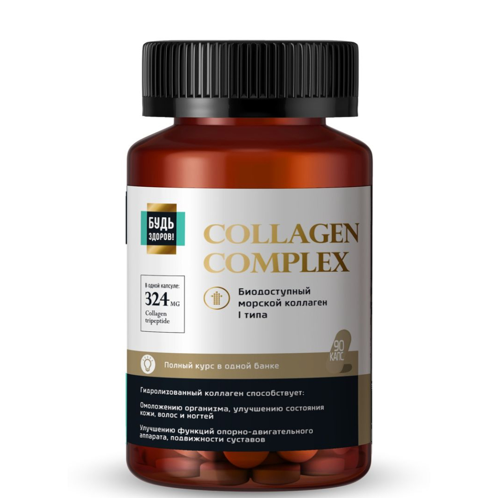 Купить Будь Здоров! Коллаген + витамин С, БАД капсулы №90