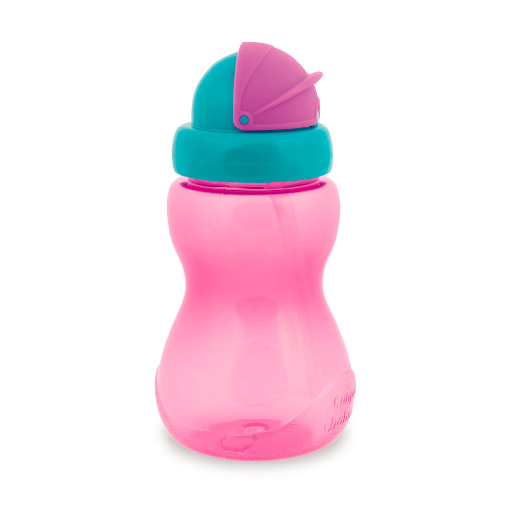 Удобная и яркая бутылочка для детей от года. Главный плюс — мягкий силиконовый мундштук, который не травмирует чувствительные десны и только что прорезавшиеся зубы. В комплекте идет плотно закрывающийся чехол, защищающий мундштук от уличной пыли, песка и грязи. Это делает бутылочку идеальным вариантом для детского сада, прогулок и дальних поездок. Внутри мундштук соединен с пластиковой трубочкой, которая опущена на дно. Благодаря этому ребенок может выпить все содержимое, не наклоняя голову. Трубочка складывается и прячется в крышку — в закрытом виде жидкость не вытекает, даже если бутылочка перевернута. Для тех, кто часто использует бутылочку, можно купить сменный мундштук с трубочкой. Материалы безопасны, не содержат BPA. Объем 270 мл. Подходит детям с 12 месяцев.
