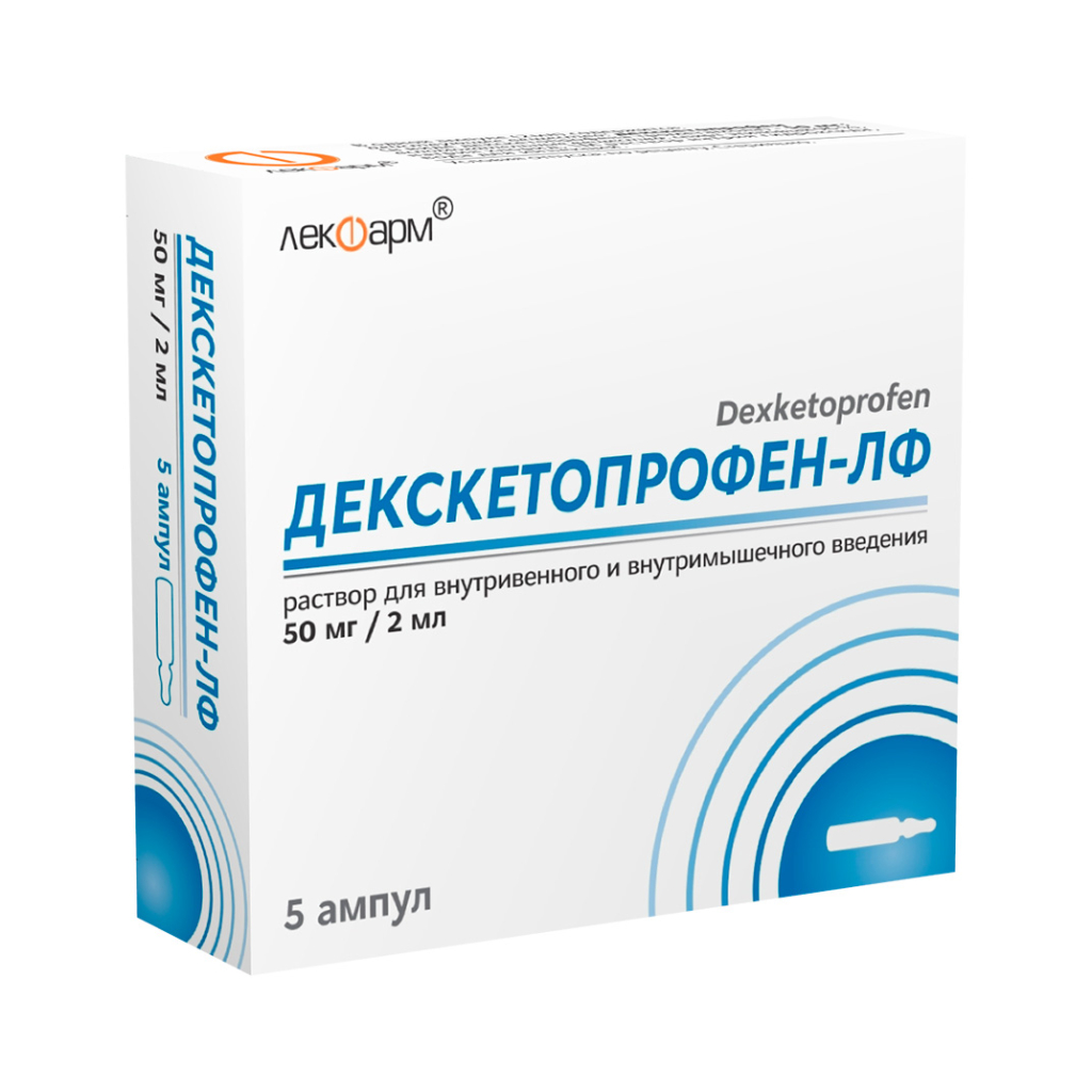 Декскетопрофен-ЛФ р-р для в/в и в/м введ./конц-т д/приг.р-ра д/инф.50мг/2мл в яч.уп №5х1