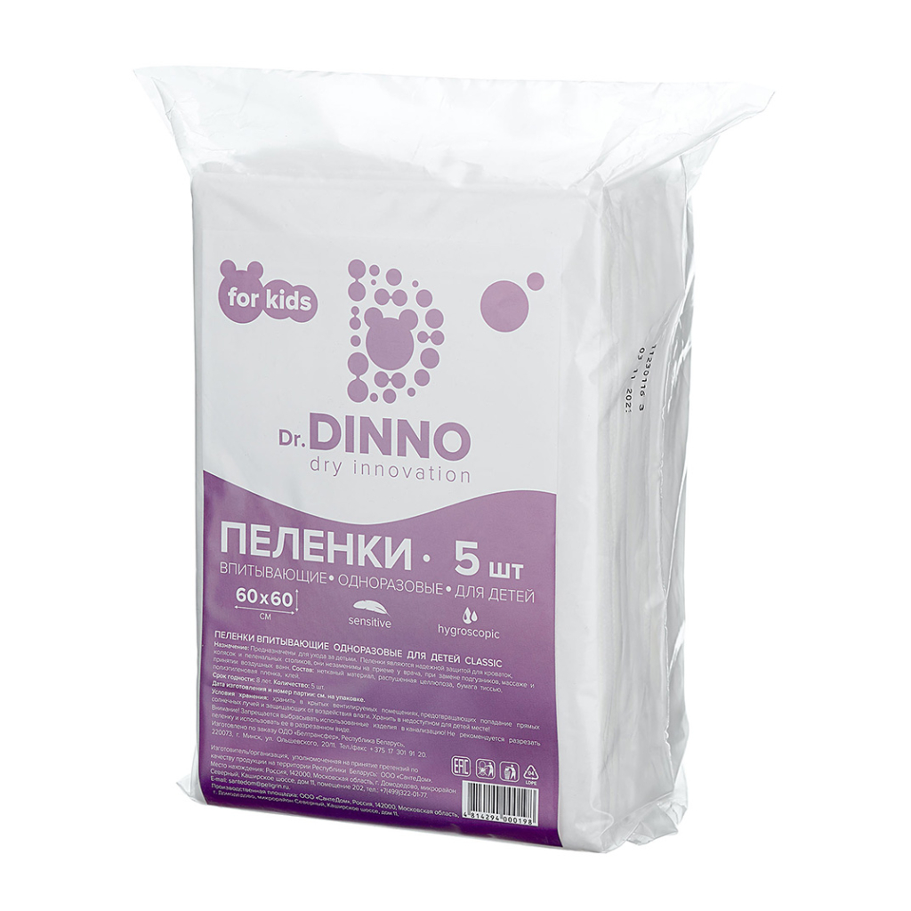 Dr.Dinno Пелёнки впитывающие одноразовые для детей 60х60, 5 шт