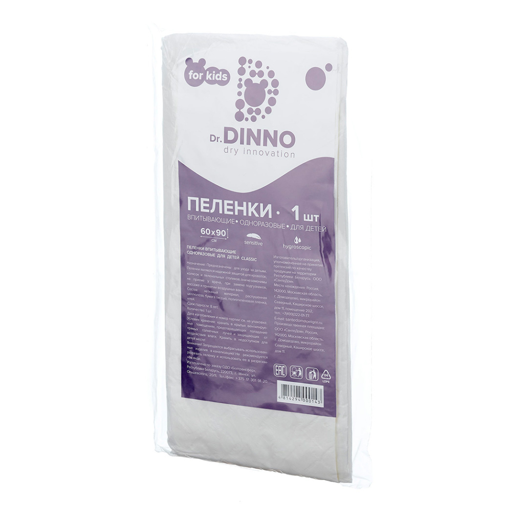 Dr.Dinno Пелёнки впитывающие одноразовые для детей 60х90, 1шт