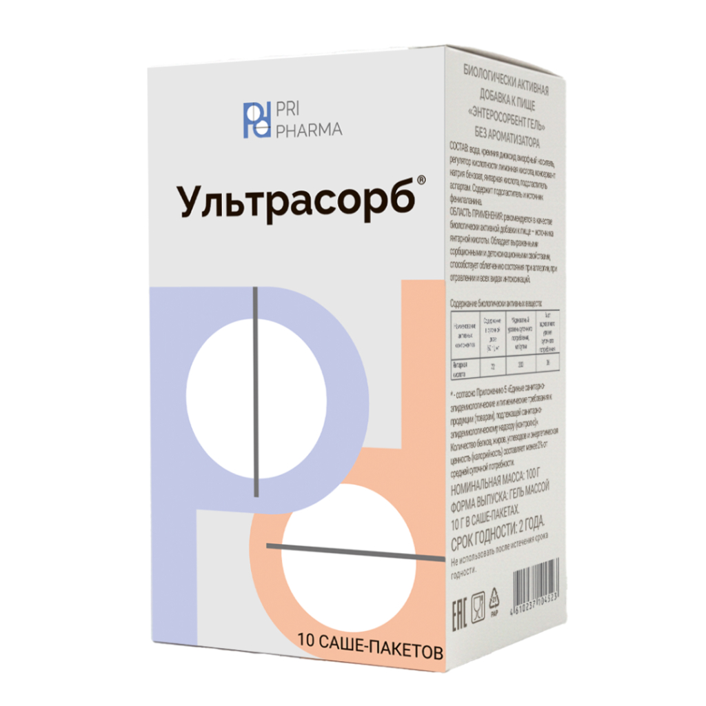 Инструкция по применению для Энтеросорбент гель (Ультрасорб) без ароматизатора, БАД гель в саше-пакетах №10