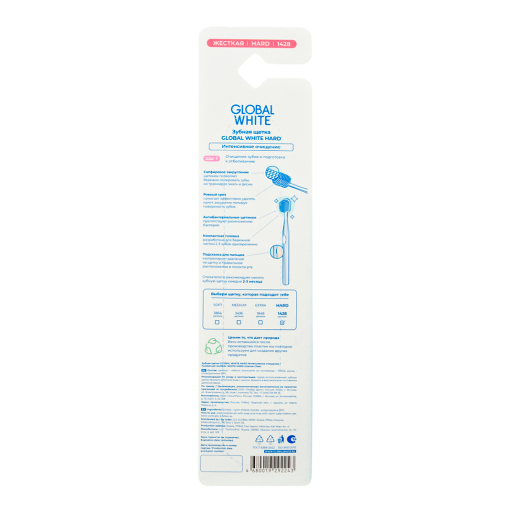 Инструкция по применению для GLOBAL WHITE Зубная щетка Hard Интенсивное очищение/Toothbrush Global White Hard Intense clean