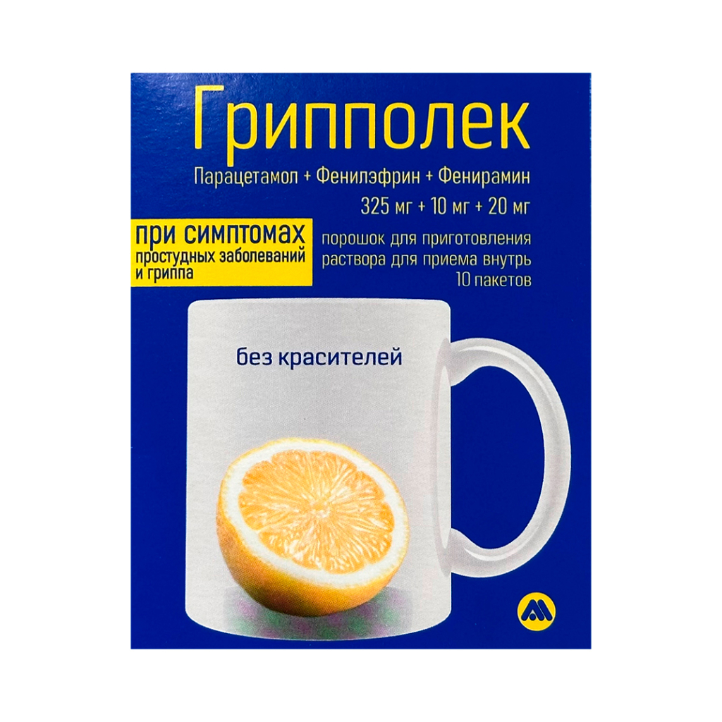 Грипполек порошок для приготовления раствора для приема внутрь (лимон) в пакетах №10