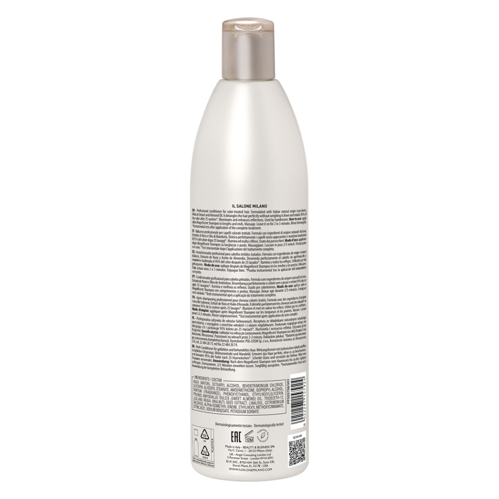 Aqua (water), Cetearyl alcohol, Behentrimonium chloride, Glycerin, Glyceryl stearate, Amodimethicone, Isopropyl alcohol, Parfum (fragrance), Phenoxyethanol, Ethylhexylglycerin, Prunus amygdalus dulcis (sweet almond) oil, Trideceth-12, Juglans regia (walnut) seed extract, Linalool, Cetrimonium chloride, Alpha-isomethyl ionone, Ethylhexyl methoxycinnamate, Citric acid, Sodium benzoate, Potassium sorbate