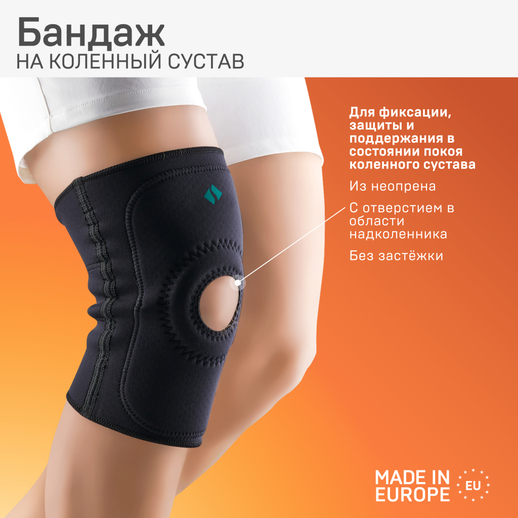 Изделия медицинские эластичные: устройства функциональные ортопедические для нижних конечностей: на коленный сустав, бандаж ELAST 9903 (Черный размер 5)
