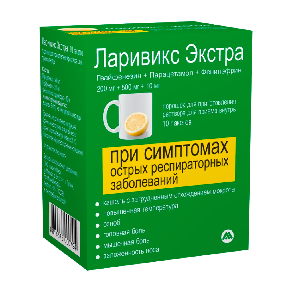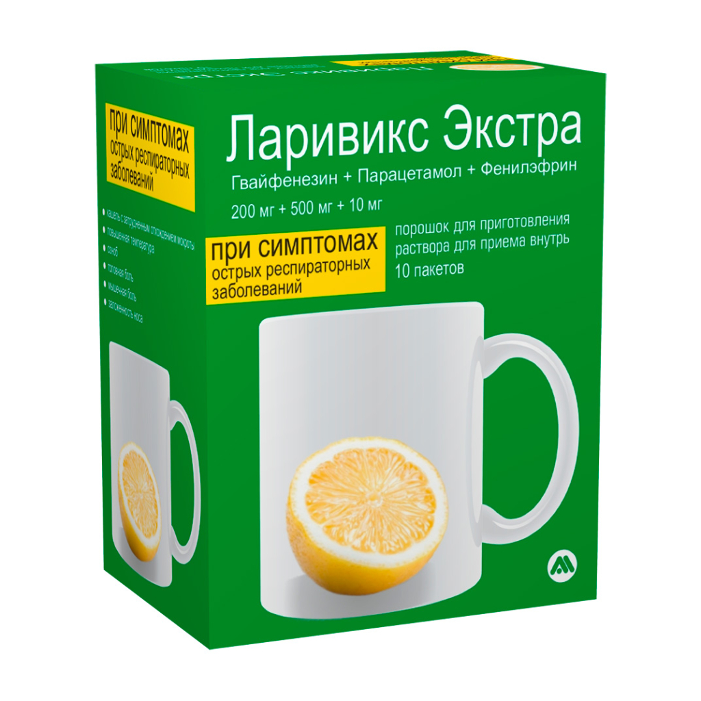 Ларивикс Экстра порошок для приготовления раствора для приема внутрь 200мг+500мг+10мг №10