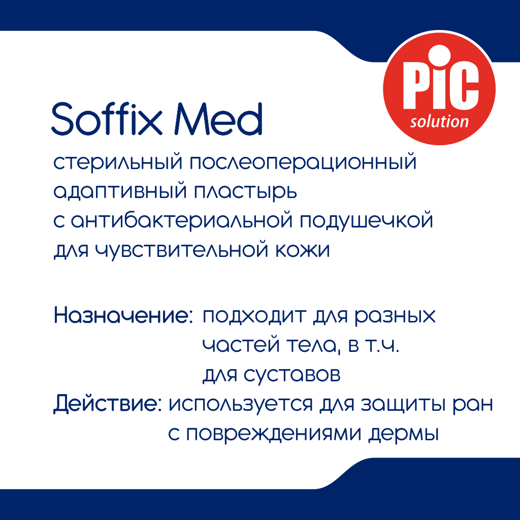 Лейкопластырь медицинский: пластырь Soffix Med стерильный послеоперационный адаптивный с антибактериальной подушечкой для чувствительной кожи, размеры, см: 10 х 6 №5