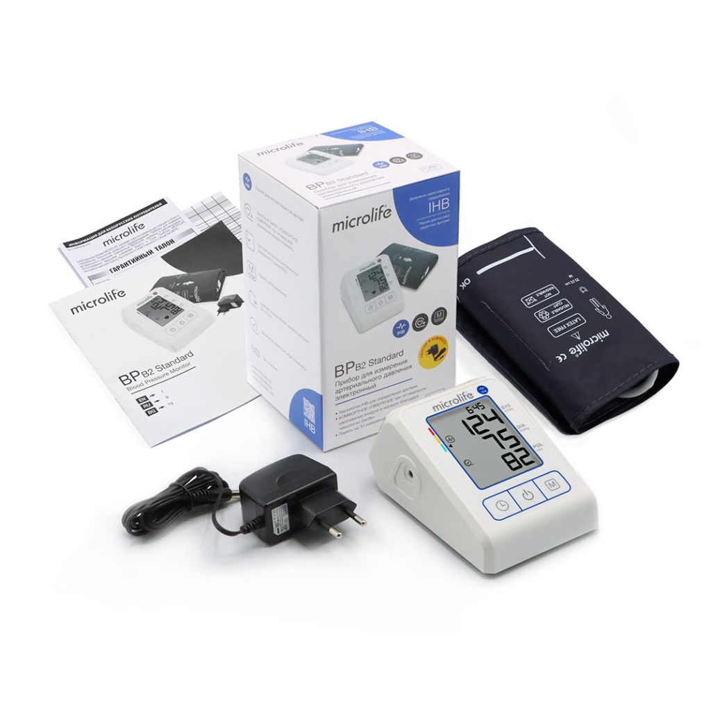 Тонометр B2 Standard с адаптером и универсальной манжетой размера M (22-32 см) — это обновленная модель популярной серии Microlife с дополнительными функциями.