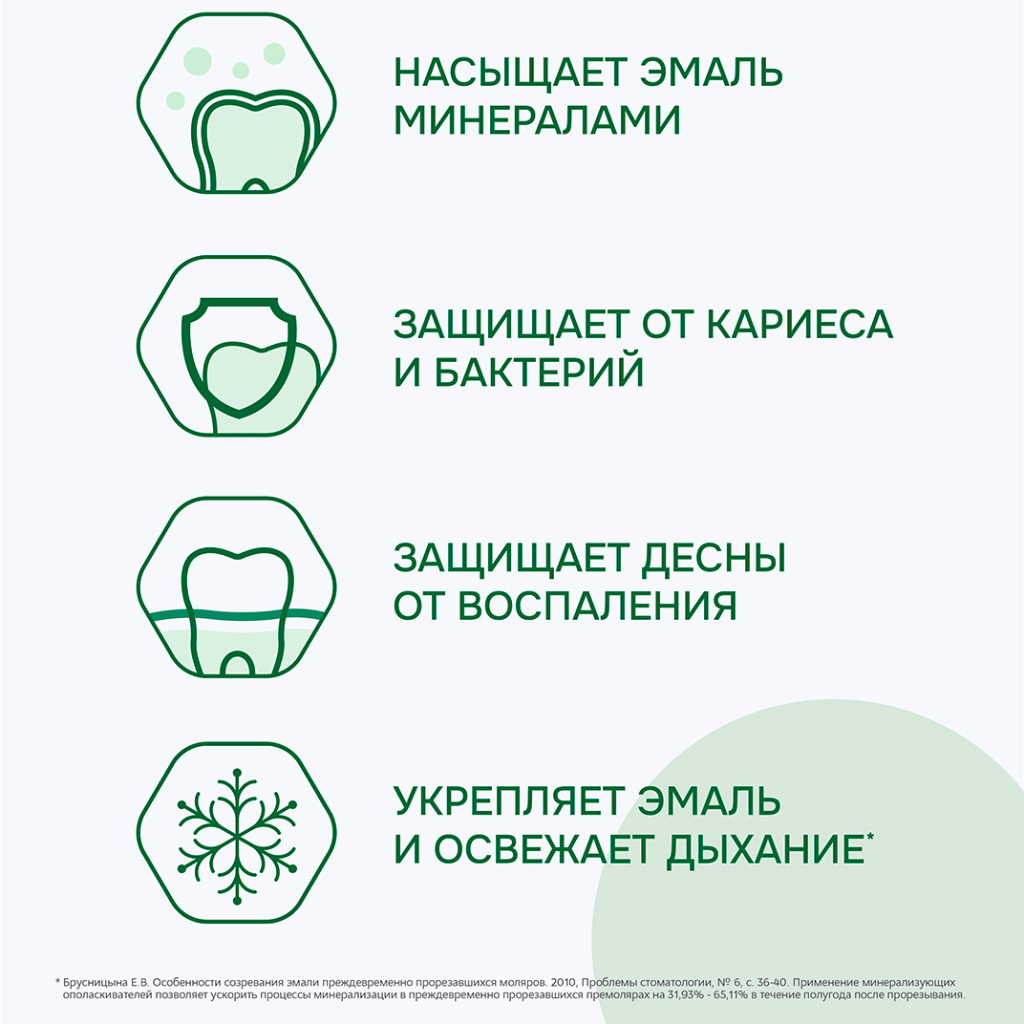 - Укрепляет зубную эмаль за счёт насыщения минералами.