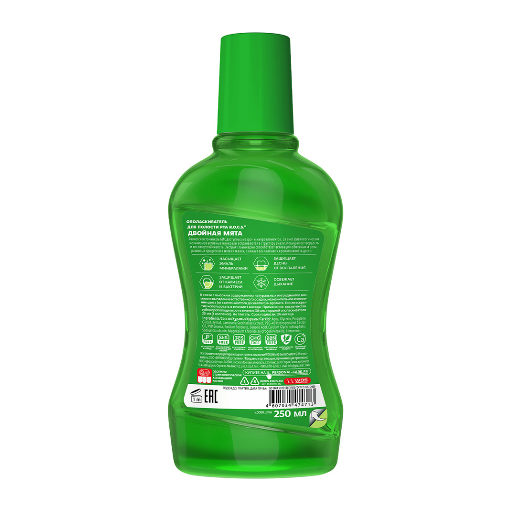 Инструкция по применению для R.O.C.S. Ополаскиватель для полости рта "Двойная мята" 250 мл
