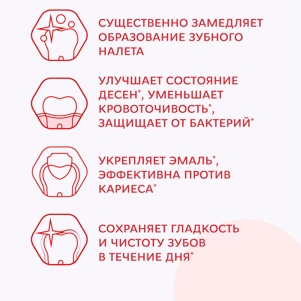 - Очищение: эффективно удаляет зубной налет и предотвращает его образование.
