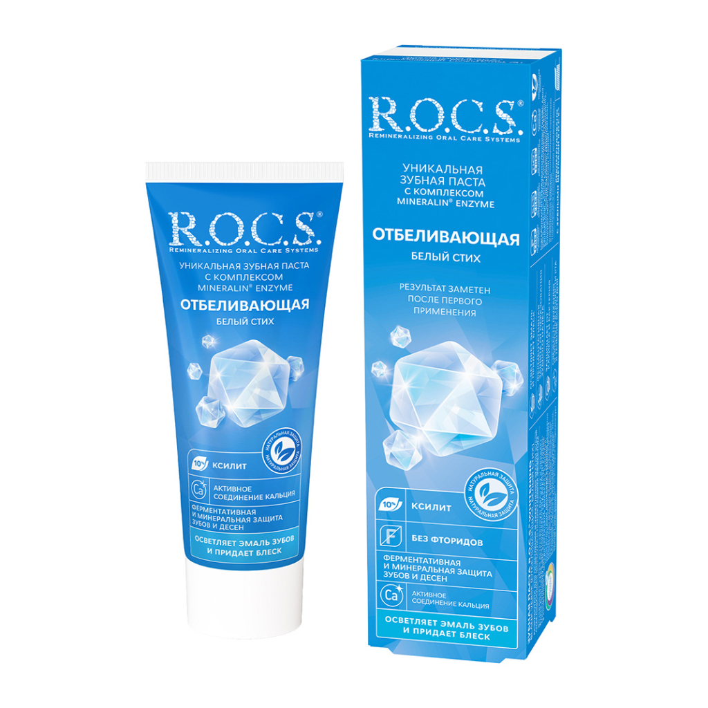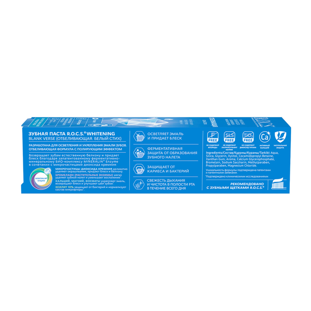 Цена на ROCS Зубная паста Whitening. Blank Verse (Отбеливающая. Белый Стих) 74гр