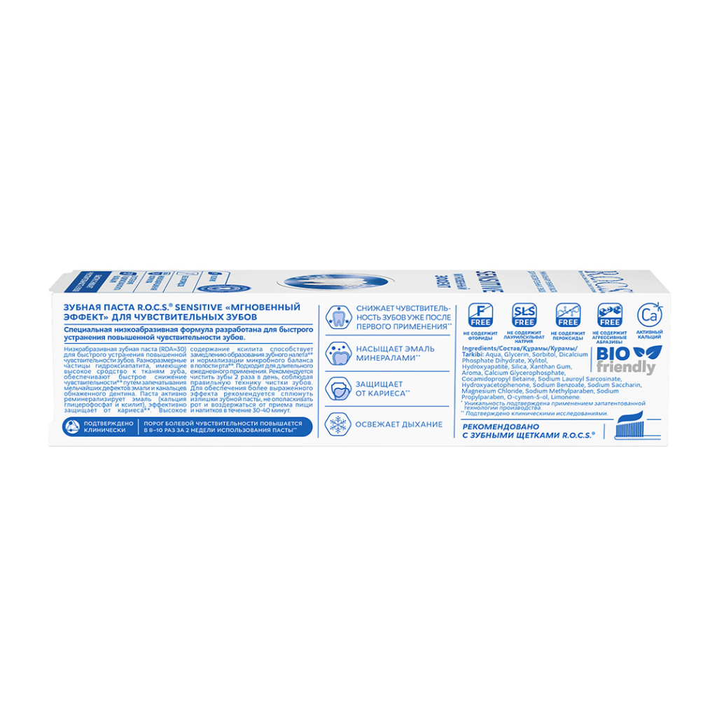 Инструкция по применению для ROCS Зубная паста Sensitive "Мгновенный эффект" для чувствительных зубов, 94 гр