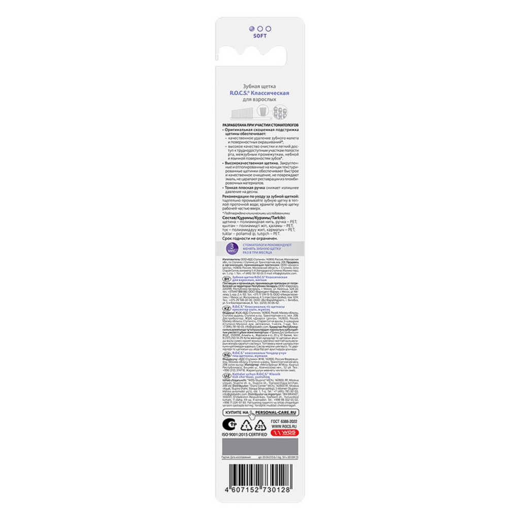 Инструкция по применению для ROCS Зубная щетка Классическая мягкая