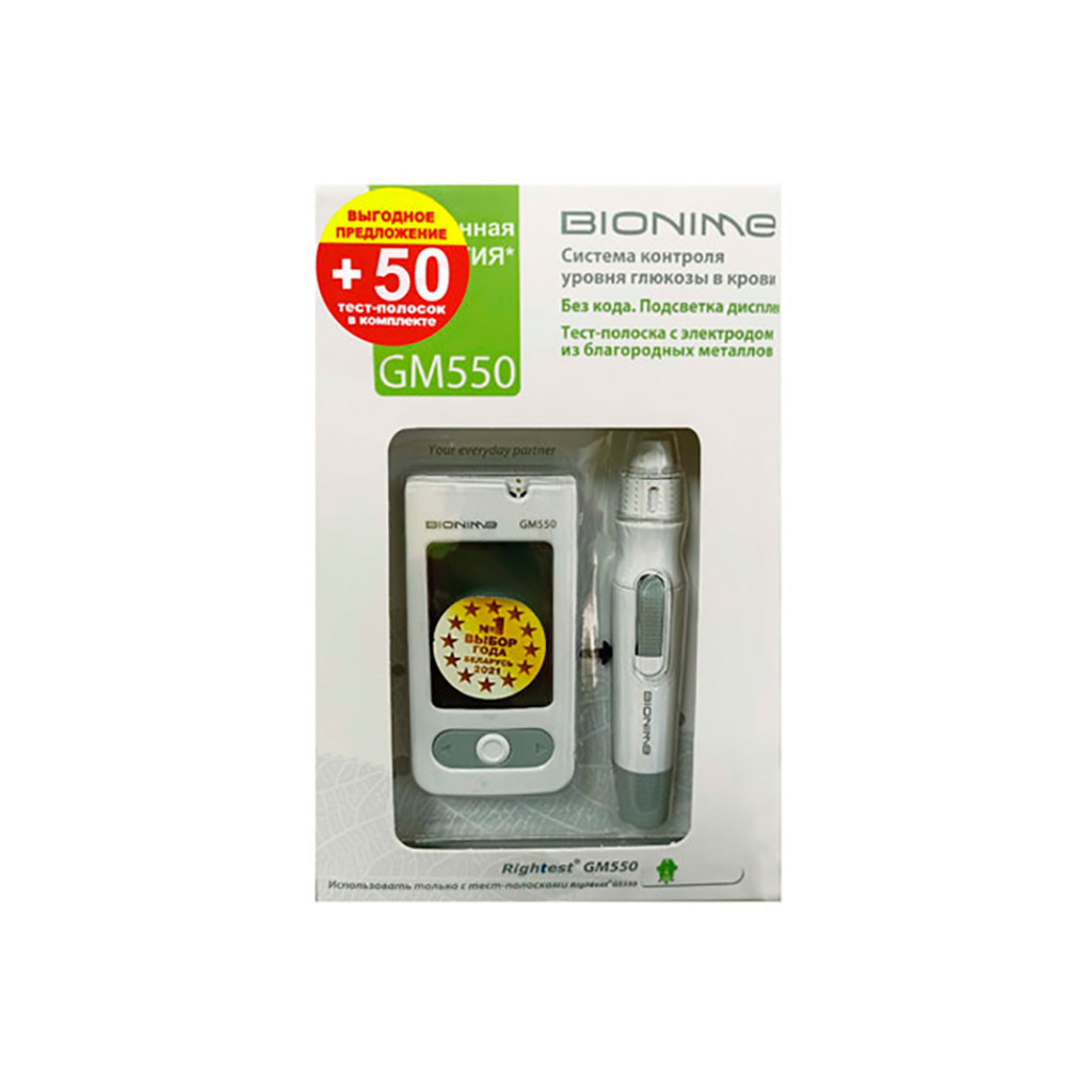 Глюкометр Bionime Rightest GM550 сочетает в себе высокую точность измерений и удобство использования, что делает его надежным помощником в контроле гликемии.