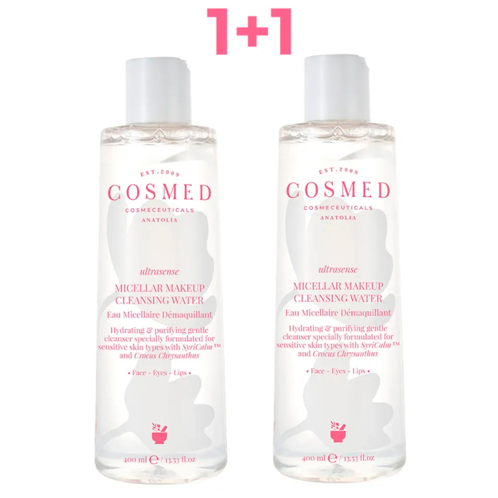 Цена на СOSMED сosmeceuticals ULTRASENSE MICELLAR MAKEUP CLEANSING WATER НАБОР 1+1 (Мицеллярная вода очищающая, увлажняющая для чувствительной кожи 400 мл)