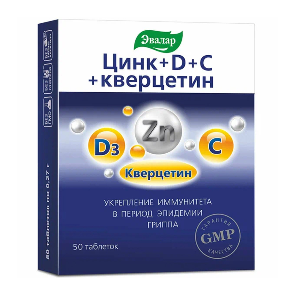 Цена на Цинк+D+C+кверцетин, БАД таблетки №50