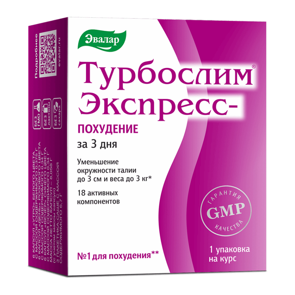 Цена на Турбослим экспресс-похудение, БАД капсулы №6х3 + саше №3