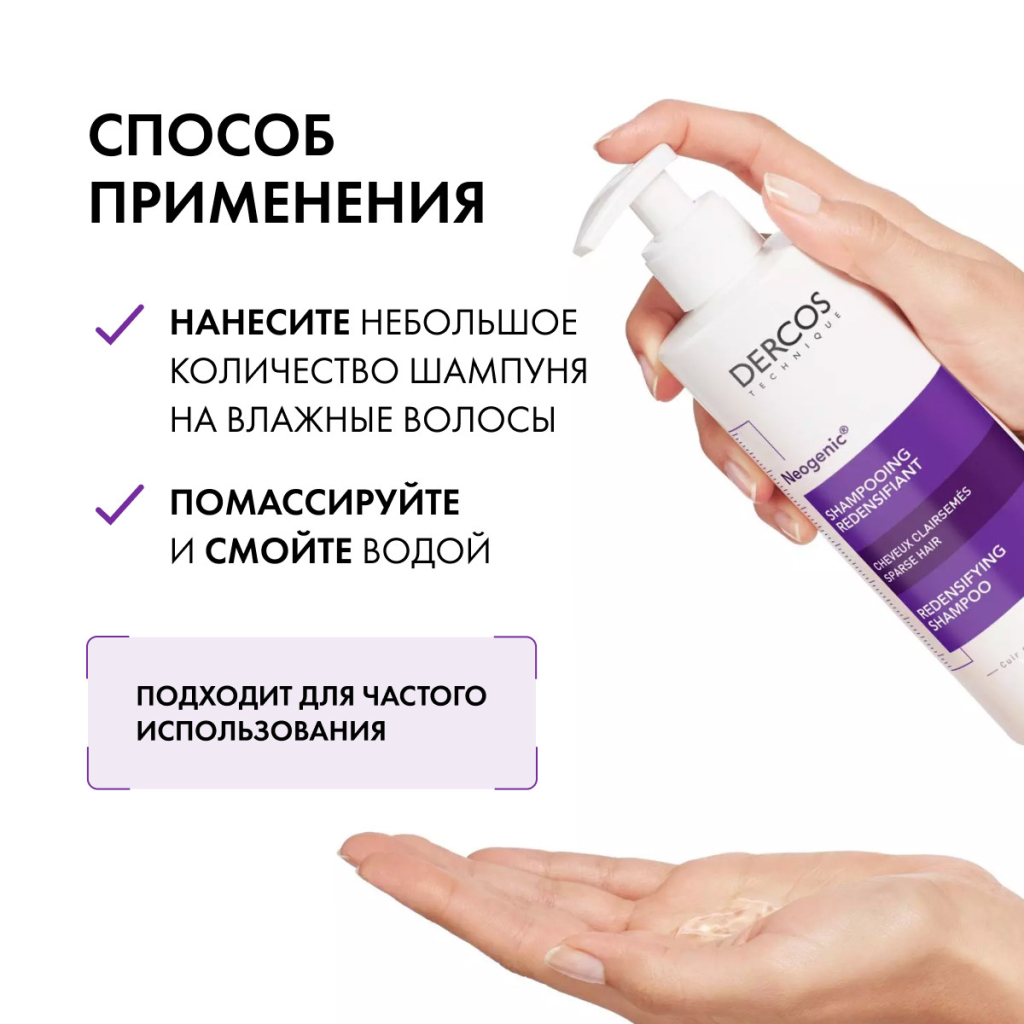 Инструкция по применению для Vichy Dercos Technique Шампунь для повышения густоты волос "Neogenic" 400 мл